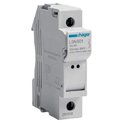 LSN501 SECC.L38 AFUSE HOLDER 1P 32A 1 MOD 690V Fuse holder, not Model: LSN501 Hager stands for technological innovation, high-quality products and attractive design., Manufacturer: Hager