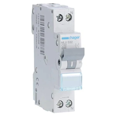 INTER MAGNETO 1P+N 32A CURVE C 6KA 1 MOD MLU532 Magnetic Thermal Circuit Switch, Model No.: MLU532 Hager is synonymous with technological innovation, high-quality products and attractive design., Manufacturer: Hager