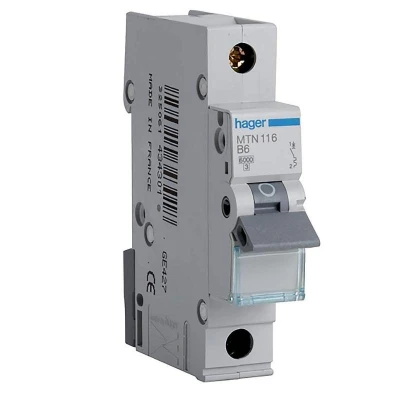 Hager 1P 6kA B 16A 1M B Type MCB (MTN116) The type B breakers mean they will trip between 3 and 5 time full load current which is suitable for most domestic installations complies with BS EN 60-898 Genuine brand new NSS product, covered by a NSS manufacturer's guarantee.