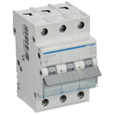 Hager mun316 a Magneto thermic Switch Series Mu, 3P, 16 A, C, Curve 6 KA