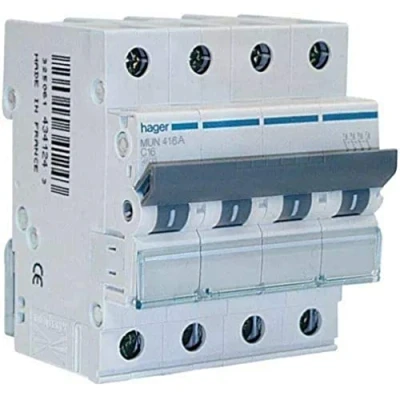Hager mun432 a Magneto thermic Switch Series Mu, 4P, 32 A, C, Curve 6 KA