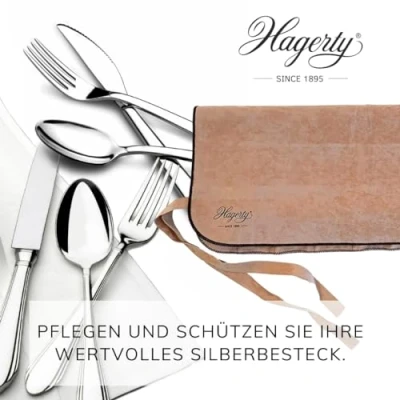 PREMIUM PROTECTION CASE for storing your silver cutlery and silver-plated cutlery I High-quality cutlery roll with 12 compartments for fruit & fish forks and other silver tableware WITH SILVER PROTECTION The cover is made of a high-quality fabric, impregnated against oxidation which gives silver cutlery a high degree of protection against oxidation and preserves its original shine IMMEDIATELY READY FOR USE Clean your silver cutlery in Hagerty's Silver Immersion Bath and store it in the silver cutlery roll - this way your silverware will stay shiny for longer and is ready for use immediately PERFECT PROTECTION against oxidation caused by hydrogen sulphide in the air I To protect other silver objects like plates or trays, we recommend the Hagerty Silver Guard Holloware Bag EXPERTISE SINCE 1895 With 125 years of experience Hagerty takes care of your jewellery, watches, accessories, decorative articles, cutlery, carpets textiles & multi-surfaces with special care products