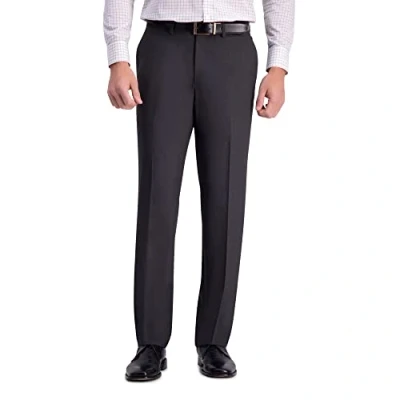 Haggar Men's 4 Way Stretch Straight Fit Flat Front Dress Pant, Charcoal Heather, 38W x 32L