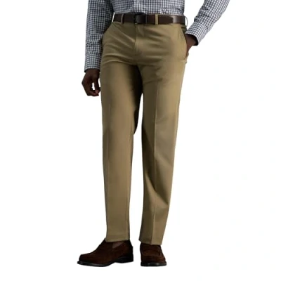 Haggar Men's Premium No Iron Khaki Straight Fit & Slim Flat Front Casual Pant, British Khaki, 38W x 30L