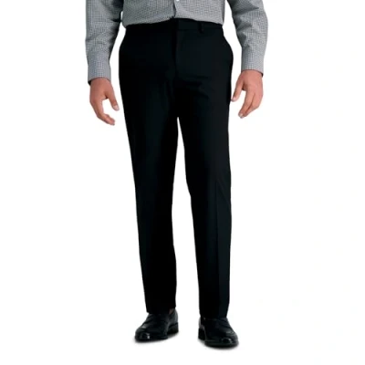 Haggar Men's Solid Gab 4 Way Stretch Straight Fit Flat Front Dress Pant, Black, 34W x 30L