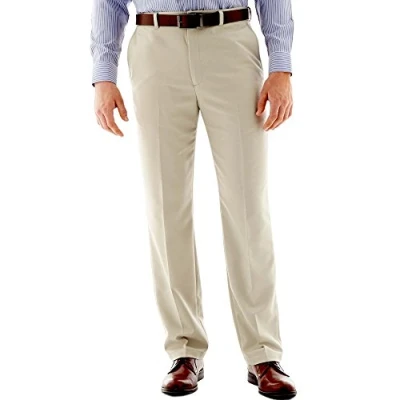 Haggar Men's 18 Hidden Waist Flat Front Pant, String Beige, 40W x 31L