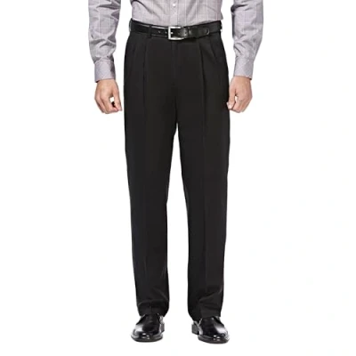 Haggar Mens Premium No Iron Khaki Classic Fit Pleat Front Regular and Big & Tall Sizes, Black, 42W x 30L