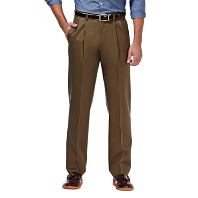 Haggar Mens Premium No Iron Khaki Classic Fit Pleat Front Regular and Big & Tall Sizes, Toast, 40W x 32L
