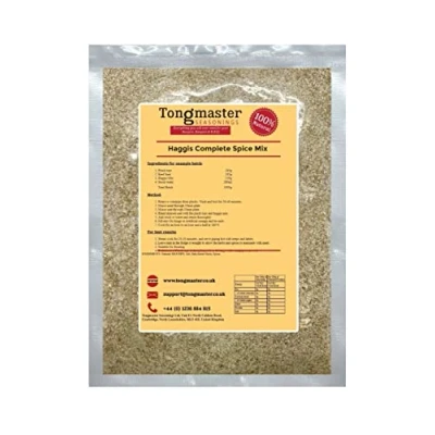 Our multi award winning Complete Haggis mix contains: Oatmeal, onion and spices to make the perfect haggis. This mix will make approximately 1kg of haggis mix Remove windpipe from plucks. Wash and boil for 30-40 minutes, once cooked, mince the meat. Blend minced suet and meat with the haggis mix. Add stock or water and mix thoroughly before filling into bungs and tying. Place in a pot and cover with cold water, bring to the boil and simmer for 30-40 minutes.