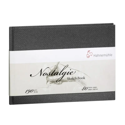 Hahnemühle Nostalgie Sketch Book. Designed for artists who appreciate precision and elegance, the Hahnemühle Nostalgie Sketch Book offers a premium surface for detailed work. Featuring 190gsm natural white paper, this sketchbook provides a smooth, low-texture finish ideal for fine lines, technical drawing, ink, and pencil.. High-Quality Paper: Smooth 190gsm acid-free paper ensures clean, crisp lines and high contrast.. Ideal for Precision Work: Perfect for pen, ink, graphite, coloured pencil, and markers.. Sturdy and Elegant: Hardbound cover with a classic design, offering durability and a refined look.. Professional Performance: Resists warping and bleed-through for confident sketching and drafting.. Made for Artists: Developed with professional creatives in mind for maximum reliability and aesthetic appeal.. Whether you’re working on architectural plans, illustrations, or finely detailed sketches, the Nostalgie Sketch Book delivers exceptional results with a touch of sophistication.