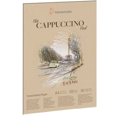 Hahnemühle Cappuccino Sketch Pad. Bring warmth and depth to your artwork with the Hahnemühle Cappuccino Sketch Pad. Featuring a soft, natural-toned brown paper, this pad provides the perfect mid-tone base for both highlights and shadows, allowing white and dark media to truly shine.. Unique Cappuccino Tone: Ideal for creating depth and contrast with light and dark pencils, pastels, and inks.. Premium Quality Paper: 120gsm acid-free, fine-grain surface designed for dry techniques and light washes.. Versatile Use: Perfect for sketching, portraits, illustration, hand lettering, and journaling.. Eco-Conscious: Made with sustainable materials for environmentally friendly creativity.. Available in Multiple Sizes: Choose the format that suits your needs, from studio work to on-the-go sketching.. Whether you're enhancing highlights with white pencil or building depth with graphite or ink, the Hahnemühle Cappuccino Sketch Pad offers a stylish and inspiring surface for your artistic journey.