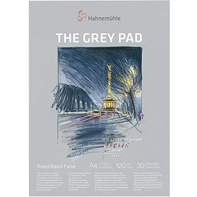 Hahnemühle Grey Sketch Pad. Enhance your sketches with the subtle elegance of the Hahnemühle Grey Sketch Pad, designed for artists who want to explore contrast, light, and shadow. The mid-tone grey surface allows highlights and dark tones to pop, making it ideal for mixed media techniques.. Fine-Grain Grey Paper: Offers a neutral background that enhances colour and shading depth.. Versatile Use: Perfect for pencils, chalk, charcoal, pastels, pens, and markers.. High-Quality Paper: Acid-free and age-resistant for long-lasting artwork.. Spiral-Bound Format: Allows for easy flipping and flat lay while working.. Portable & Durable: Great for sketching both in the studio and on the go.. Whether you're creating portraits, urban sketches, or quick studies, this grey-toned pad provides a unique surface to elevate your creative expression.