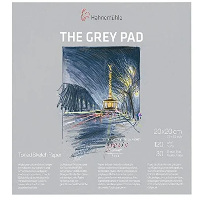 Hahnemühle Grey Sketch Pad. Discover a new dimension in drawing with the Hahnemühle Grey Sketch Pad – ideal for artists looking to explore contrast, tone, and depth. Featuring medium-grey toned paper, this pad provides the perfect background for both light and dark media, allowing highlights and shadows to truly stand out.. Premium Grey Paper: 120gsm acid-free paper with a smooth surface for detailed work.. Perfect for Mixed Media: Suitable for pencils, pens, ink, charcoal, chalk, and pastel.. Enhances Contrast: Mid-tone grey background helps light colours and white highlights pop.. Ideal for Sketching on the Go: Lightweight and portable for travel or studio use.. Available in Multiple Sizes: Choose the perfect format to suit your creative workflow.. Whether you're sketching portraits, landscapes, or urban scenes, the Hahnemühle Grey Sketch Pad adds dynamic visual interest to your artwork.