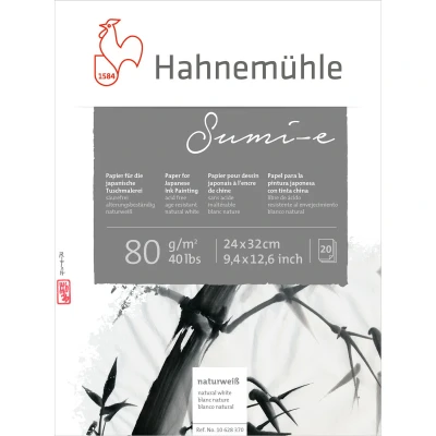 Hahnemühle Sumi-e Pad – Traditional Paper for Expressive Ink Art. Discover the elegance of traditional Japanese ink painting with the Hahnemühle Sumi-e Pad. Designed specifically for Sumi-e and brush painting techniques, this pad offers a refined surface that beautifully captures fluid brushstrokes and delicate ink washes.. Authentic Sumi-e Experience: Crafted for calligraphy, ink painting, and expressive brushwork.. Soft, Absorbent Surface: Ensures smooth ink flow and rich tonal variations.. Lightweight yet Strong: Delicate feel with the resilience needed for traditional and modern styles.. Natural White Paper: Enhances the contrast and depth of black ink and water-based pigments.. Ideal for East Asian Art Forms: Perfect for creating landscapes, florals, and minimalist compositions.. Whether you're exploring Zen-inspired brushwork or fine art calligraphy, this pad provides a beautifully responsive surface to bring your ideas to life.