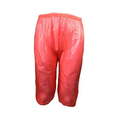 Unisex Bloomers, thigh length with elasticated legs and waist. A more traditional cut giving full protection. Antibacterial protection controls odor. Comfortable elastic waist and leg openings; pants stay soft wash after wash. Material:100% PVC. Heat welded side seams. XXL Size waist min. 34-56 inch max stretched.