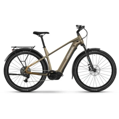The Trekking 6.5 High is built for practical riding on roads, paths and light gravel. A stable aluminium frame, smooth Bosch assistance and useful touring features make it a dependable choice for daily commuting and longer weekend rides.Key Features:Aluminium trekking frame with stable, upright geometrySR Suntour Mobie 34 DS fork with 100mm travelNo rear suspensionShimano CUES U6000 10-speed drivetrainShimano MT410 hydraulic disc brakes27.5" wheels with Continental Ruban Reflex tyresIntegrated rack, mudguards, lights and dropper postAvailable with 0% APR financeDrive Information:Bosch Performance Line CX motor, 85Nm torqueBosch PowerTube 600Wh batteryBosch Smart System with LED remoteThe Haibike Trekking 6.5 High is designed to support everyday riding as well as longer journeys, whether you’re commuting during the week or heading out for a full day in the saddle. Its aluminium frame is built for strength and stability, with a riding position that balances comfort and control over distance.Up front, the SR Suntour Mobie 34 DS suspension fork offers 100mm of travel to help smooth out uneven roads, gravel tracks and rougher paths. It takes the edge off vibrations without dulling the steering, which helps keep the bike predictable when surfaces change.Assistance comes from the Bosch Performance Line CX motor, delivering up to 85Nm of torque. Power is delivered smoothly and consistently, which is especially helpful when climbing hills, riding into headwinds or carrying luggage. The Bosch PowerTube 600Wh battery is neatly integrated into the frame and offers solid range for commuting and touring, with the option to add a range extender for longer trips. The Bosch Smart System keeps everything connected through the LED remote, giving clear ride information and control on the move.The Shimano CUES U6000 10-speed drivetrain is designed for durability and dependable shifting. Paired with a wide-range cassette, it gives you usable gears for steady climbing and relaxed cruising on flatter sections. Shimano MT410 hydraulic disc brakes provide consistent stopping power in wet or dry conditions, offering confidence when riding year-round.Rolling on Schürmann Yak25 wheels, the Trekking 6.5 High is fitted with Continental Ruban Reflex tyres. These offer a comfortable, stable ride on tarmac with enough grip for gravel and mixed surfaces, while reflective sidewalls improve visibility in low light.Practical features are a big part of this bike’s appeal. The Trekking 6.5 High comes fully equipped with mudguards, a rear rack and integrated lighting, making it ready for commuting or touring straight away. A dropper seatpost adds convenience when stopping frequently or adjusting your riding position, and wide handlebars support stable steering in traffic and on longer rides.Overall, the Haibike Trekking 6.5 High is a reliable, well-equipped e-bike for riders who want supportive power, everyday practicality and confidence across a wide range of riding conditions.*Performance upgrades to 100Nm torque, 750W power and 400% support are available via the Bosch eBike Flow app. A free firmware update, delivered through the app, may be required.