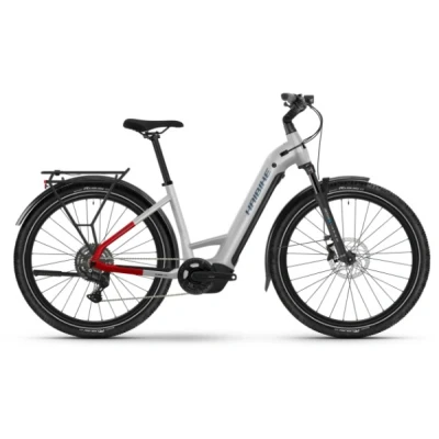 The Trekking 7 Low is built for comfortable, practical riding on roads, paths and gravel. A low-step aluminium frame, smooth Bosch assistance and useful everyday kit make longer rides and daily journeys feel easy and well supported.Key Features:Aluminium low-step frame with stable, upright trekking geometrySR Suntour Mobie 34 fork with 100mm travelNo rear suspensionShimano CUES U6000 11-speed drivetrainShimano MT410 hydraulic disc brakes27.5" wheels with Continental Ruban tyresFully equipped with rack, mudguards, lights and dropper postAvailable with 0% APR financeDrive Information:Bosch Performance Line CX motor, 85Nm torqueBosch PowerTube integrated batteryBosch Smart System with LED remote and app supportThe Haibike Trekking 7 Low is designed for riders who want to ride further while keeping things comfortable and easy to manage. The aluminium low-step frame makes getting on and off the bike straightforward, which is especially useful for stop-start riding, carrying luggage or simply preferring a more accessible frame shape. The upright riding position supports comfort and control over longer distances.Up front, the SR Suntour Mobie 34 suspension fork offers 100mm of travel, helping to smooth out broken tarmac, gravel tracks and uneven paths. It adds comfort without dulling the steering, so the bike still feels stable and predictable when the surface changes.Power comes from the Bosch Performance Line CX motor, delivering up to 85Nm of torque. Assistance feels strong but well controlled, making climbs easier and helping you maintain a steady pace on longer rides. The Bosch Smart System keeps everything connected, with real-time ride data shown through the LED remote and compatible app. The integrated Bosch PowerTube battery is neatly housed in the frame and provides the range needed for extended journeys.The Shimano CUES 11-speed drivetrain is designed for durability and smooth shifting. A wide-range 11–50T cassette gives you low gears for steeper climbs and relaxed gearing for flatter sections, making it well suited to mixed terrain and loaded riding. Shimano MT410 hydraulic disc brakes provide consistent stopping power in wet or dry conditions, giving confidence when riding year-round.Schürmann Yak25 wheels are paired with Continental Ruban tyres, which roll efficiently on the road while offering extra volume and grip for gravel and rougher surfaces. Reflective sidewalls improve visibility in low light, adding reassurance on early morning or evening rides.Practical details complete the package. The Trekking 7 Low comes fully equipped with mudguards, a rear rack and integrated lighting, so it’s ready for commuting or touring straight out of the box. A dropper seatpost adds extra convenience when stopping frequently, and the comfortable saddle supports longer days in the saddle.Overall, the Haibike Trekking 7 Low is a capable, well-equipped e-bike for riders who want supportive power, everyday practicality and an easy-access frame for regular riding and longer adventures.*Performance upgrades to 100Nm torque, 750W power and 400% support are available via the Bosch eBike Flow app. A free firmware update, delivered through the app, may be required.