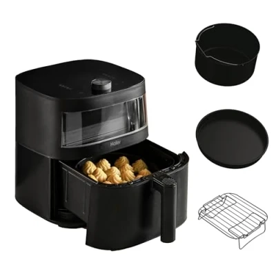 Haier Air Fryer, I Master Series 5 9 in 1 with Accessory Set Touch Display Bake Roast Grill Defrost Slow Cook Dehydrate & Yoghurt Making 7L Capacity Viewing Window On App Black