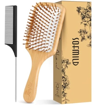 Hair Brush, Eco Friendly Natural Wooden Bamboo Paddle Hairbrush for Long Short Curly Thick Thin Men Women Kids, Massaging Scalp, Reducing Tangle & Breakage, Promoting Growth