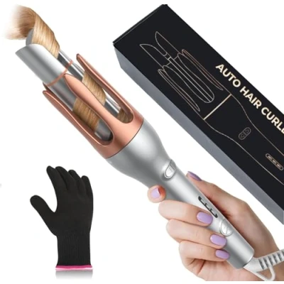 【Smart Automatic Curling Iron for Stunning Waves】The 32mm automatic curling iron features a dual rotating barrel (LEFT/RIGHT), eliminating the need for complicated curling techniques. Thanks to the built-in automatic shut-off function and beep indicator, you'll know when to release the curling iron for large, bouncy waves. Effortlessly create smooth, beachy waves, making it ideal for beginners. 【3 Heat Settings & Lasts Over 24 Hours】This curling iron is designed for different hair types and offers precise temperature control. Set it to 160°C for delicate or damaged hair, 180°C for soft or healthy hair, and 200°C for thick or coarse hair. With tourmaline-ceramic technology, it releases millions of negative ions to neutralize static electricity, leaving your hair soft, hydrated, and with enhanced shine. 【Fast Heating & Safety Features】Thanks to PTC heating technology, the curling iron automatically reaches the desired temperature in just 30 seconds, saving you valuable time on busy mornings. This rotating automatic curling iron features an insulated tip and anti-tangle technology to protect your hair from damage. 【Universal Dual Voltage for Travel】The automatic curling iron supports dual voltage (110V-240V), making it the perfect travel companion with just one plug adapter. This 32mm curling iron is also an excellent gift idea for Mother's Day, Valentine's Day, birthdays, Thanksgiving, Christmas, New Year's, and anniversaries. 【How to Use for Perfect Curls】1: Hold the curling iron with the groove on the front facing outwards and the back facing you. 2: Insert a 1-2 cm section of hair from back to front into the barrel groove. 3: Select the curl direction and press the wrap button until the curling process is complete, without releasing the hair immediately. 4: After 8 to 12 seconds, you will hear two beeps indicating that you can release your hair.