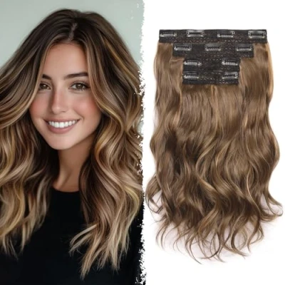 【Package Contents】4PCS clip in hair extensions of 14 Inches 125g in total. Each package includes: 1 piece of 7 Inches wide weft with 4 clips; 1 piece of 6 Inches wide weft with 3 clips; 2 pieces of 5 Inches wide weft with 2 clips. You can choose the number of pieces to wear according to your needs. 【More Volume and Natural】 Compared to traditional hair extensions, 4pcs clip in hair extensions can provide you with more volume with no glue, no tape, causing no damage to your hair and scalp and with less shedding. Vigorous clip in extensions are made with heat resistant fiber synthetic but look completely natural like real. And this Hair Extension can make your hair look longer, thicker, which is very easy to wear. You can trim and reshape your hair style according to your own hair length. 【Multiple Functions】This hair extension is the best way to add hair length and volume, to change your hair into a more full, bouncy and charming look. It's also the best remedy for a bad hair cut. You can use a lighter color for dark hair to make highlight effect, or a darker color for light hair for an ombre look. No matter what color you choose, you can never go wrong. 【How to Care】--Unlike your own hair, hair extensions may become tangled without nutrients. Use a detangling spray, or take a spray bottle and put some conditioner in it and add water. If there is no conditioner, just spray some water, so that the hair extension will not be very dry and prevent tangles to a certain extent. 【Chromatic Aberration】All products in this store are real shots; there may be slight deviations due to technology, display, light, environment, etc., please refer to the actual product.