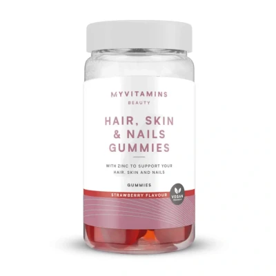 1 bottle contains 30 servings - 2 gummies a day. What Are Myvitamins Hair, Skin And Nails Gummies? Myvitamins Hair, Skin and Nails Gummies are delicious and convenient gummies which contain zinc and biotin to contribute to the maintenance of normal hair as well as skin. (1,2) Not only are they packed with essential everyday vitamins and minerals, our chewable gummies are Blueberry flavoured so they’re tasty too. Why Use Our Myvitamins Hair, Skin And Nails Gummies? Along with important beauty nutrients, these gummies are formulated with vitamin C to help reduce fatigue (3) and biotin to maintain cognitive function, (4) making them a great addition to your overall wellness. If you're looking for a plant-based alternative to these tasty gummies, try our Strawberry Vegan Hair, Skin & Nails Gummies. What Works Well With Myvitamins Hair, Skin And Nails Gummies? The vitamin C in our Hair, Skin & Nails Gummies helps to support normal collagen formation. (5) To boost your collagen intake further, try our bestselling Coconut & Collagen Capsules. References: 1. Zinc contributes to the maintenance of normal hair, skin and nails. 2. Biotin contributes to the maintenance of normal hair and skin. 3. Vitamin C contributes to the reduction of tiredness and fatigue. 4. Biotin contributes to the maintenance of normal psychological function.