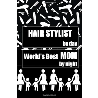 hair STYLIST by day World's Best MOM night: gift for stylists, hairdressers, moms, mothers, tools and accessories background, lined ... pages writing notes, decorated interior.
