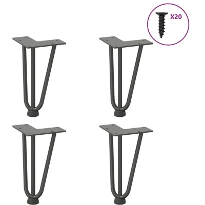 VidaXLThese hairpin legs for coffee tables combine form and function. It's an ideal choice for customising your coffee table. Durable material: This hairpin table leg is made of solid powder-coated steel, making it sturdy and long-lasting enough to support a heavy tabletop.Practical design: This hairpin table leg includes adjustable foot levellers, ensuring stability even on uneven floors and minimising floor scratches. Furthermore, the bracket incorporates pre-drilled holes and delivery-included screws for attaching the leg to the tabletop (not included), simplifying the assembly process.Modern aesthetics: The hairpin table leg offers a sleek and contemporary look. Its clean lines and geometric design enhance the overall appearance of the furniture. Good to know:The delivery only contains table legs, the tabletop is not included.