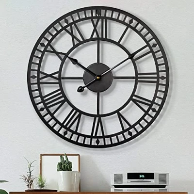 COMPLETELY QUIET - Thanks to its high-quality quartz movement, simple design without sweeping pointer movement, the clock is energy efficient, quiet and non-ticking, it will not disturb you no matter where you install it. Large Design - The frame of the wall clock is handmade from solid iron, and the high-quality materials ensure the sturdiness and retro appearance of the Roman wall clock. Vintage Decoration:Decorative wall clock suitable for living room, office, bedroom, kitchen, school, classroom and other public places or home. EASY TO INSTALL The hook design, although it is strong, does not damage the wall, the back slot clock is easy to hang and powered by 1 AA battery.