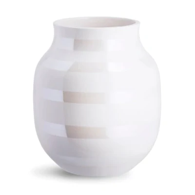 Ceramic vases, original design, hand-painted stripes Box contents: vase height 20 cm made of ceramic, white The fine Omaggio mother of pearl vase makes an elegant design statement The discreet colour highlights the ceramic and reinterprets the classic, colourful Omaggio vase in an elegant way Collection: Omaggio designed by the designer Stilleben v/Reckweg & Nordentoft