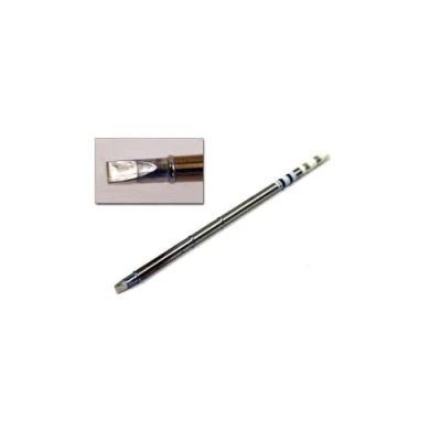 T15 Series Soldering Iron Tip, ‘D’ Long chisel shape 5.2mm x 9.5mm x 13mm This shape is capable of any soldering by placing the tip end in 2 ways: line and face. Shape D is also available for soldering at narrow pitches by placing the tip end in Line. Requires slightly more skill than the standard ‘B’ series tips. Suitable for use with the Hakko FM-2027 and FM-2028 Soldering Irons, Manufacturer: Hakko