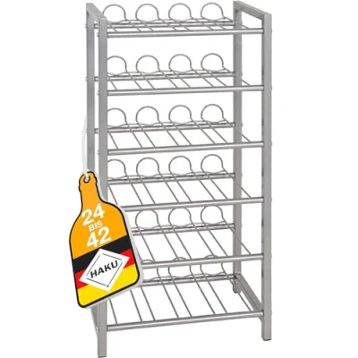 Made of steel tubing painted in aluminum with 6 shelves for approx. 42 0.5L bottles