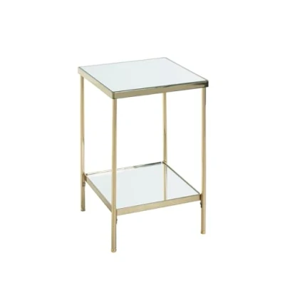 Made of brass-plated steel tubing Frame made of flat steel, brass-plated Mirror glass shelves Load capacity: 6 kg per shelf/intermediate height 10/32 cm Height-adjustable feet
