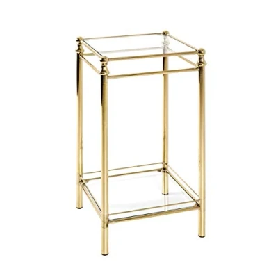 Made of brass-plated steel tube with solid elements Safety glass shelves Load capacity: 10 kg per shelf