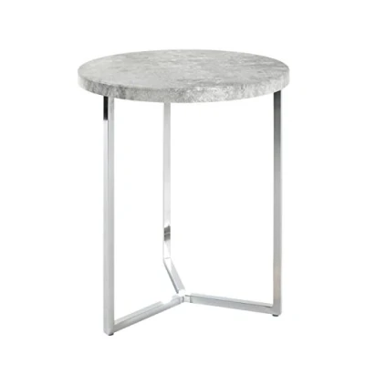 HAKU Mobel End Table Concrete Optic, Chrome, Mdf, Metal Size: H 54 cm X Ø 45 cm, Style: Modern
