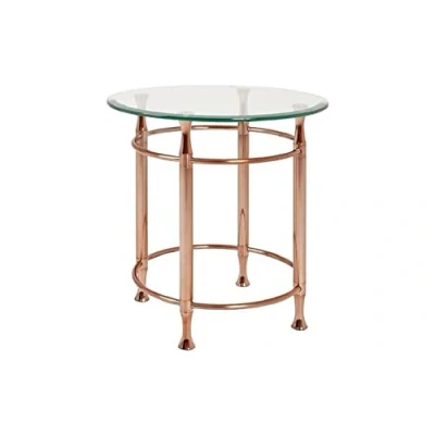 HAKU Mobel End Table Copper, Metal, Tempered Glass 10 mm Size: H 52 cm X Ø 50 cm, Style: Contemporary