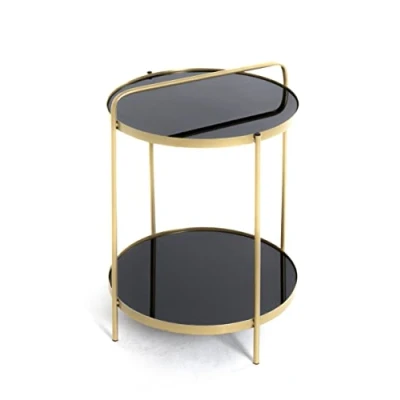 HAKU Mobel End Table Gold, Black, Metal, Tempered Glass Size: H 51 cm X Ø 38 cm, Style: Art Deco