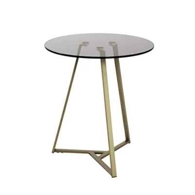 HAKU Mobel End Table Gold, Grey, Metal, Tempered Glass 8 mm Size: H 50 cm X Ø 45 cm, Style: Art Deco