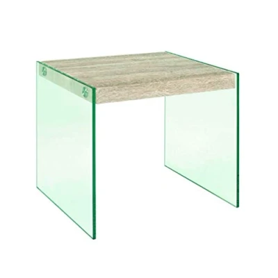 HAKU Mobel End Table Light Oak, Metal, Tempered Glass 8 mm Size: W 40 cm X H 35 D cm, Style: Modern
