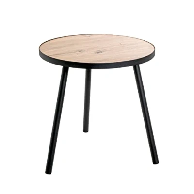 HAKU Möbel End Table Oak, Black, Mdf, Metal Size: H 52 cm X Ø 50 cm, Style: Modern