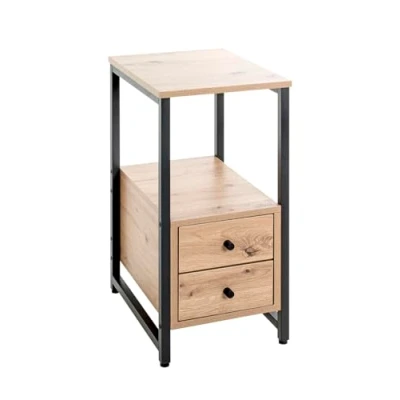 HAKU Mobel End Table Oak, Black, Metal, Particleboard Size: W 30 cm X H 63 D 40 cm, Style: Modern