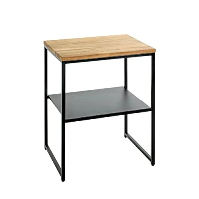 HAKU Mobel End Table Oak, Black, Solid Wood, Metal Size: W 45 cm X H 60 D 35 cm, Style: Modern