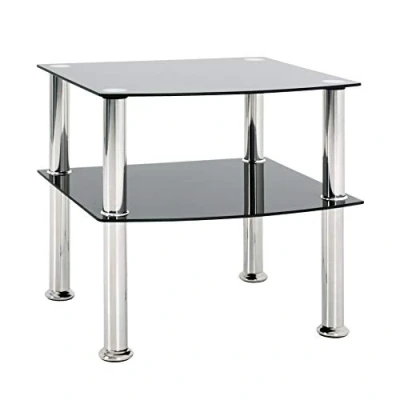 HAKU Mobel End Table Stainless Steel, Black, Tempered Glass Size: W 45 cm X H 44 D cm, Style: Modern