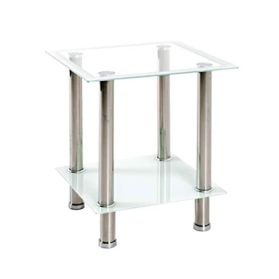 HAKU Mobel End Table Stainless Steel, White, Tempered Glass Size: W 40 cm X H 46 D cm, Style: Modern