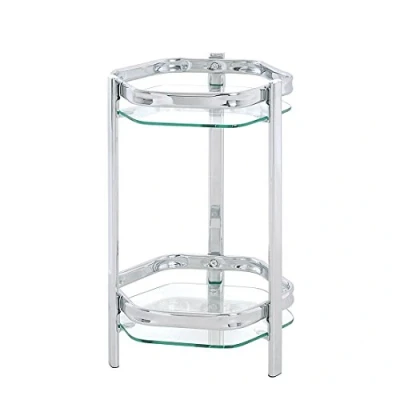 Made of chrome steel tube Clear glass shelves diameter: 28 cm Load capacity: 5 kg per shelf