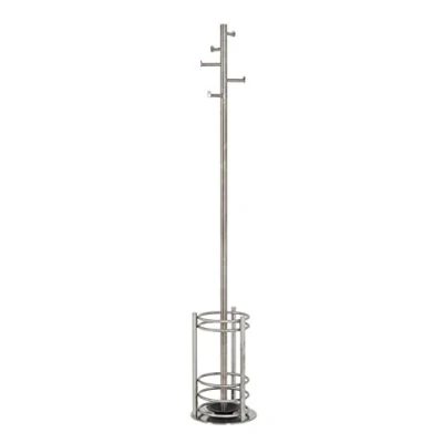 stainless steel frame with 5 coat hooks Solid stainless steel base plate with integrated umbrella stand black plastic dish drip tray diameter: 30 cm