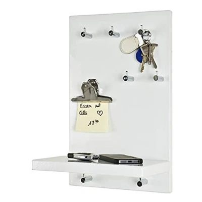 HAKU Mobel Key Hanger Chrome, White, Mdf, Metal Size: W 25 cm X H 40 D 17 cm, Style: Modern