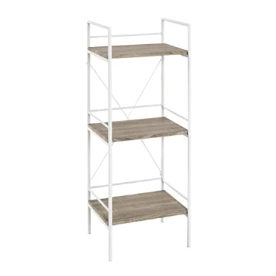 Made of tubular steel painted in white with 3 shelves made of MDF with light oak decor Load capacity: 8 kg per shelf