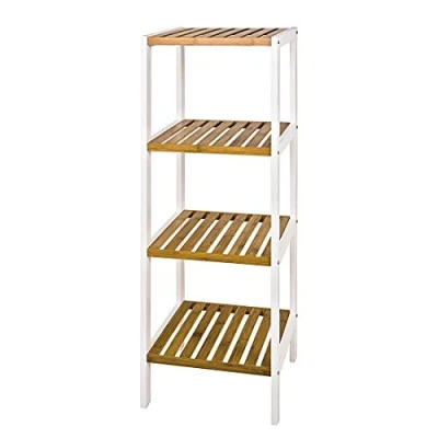 White lacquered MDF frame with 4 shelves made of natural-colored bamboo load capacity: 20 kg