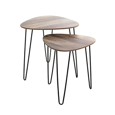 HAKU Mobel Set of 2 End Tables Oak, Black, Mdf, Metal Size: W 40/48 cm X H 43/48 D cm, Style: Modern